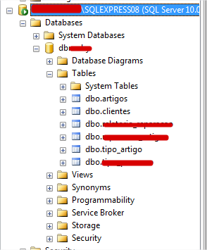 Introduzimos onde indica Server a nossa instancia de SQL, poderá ser por exemplo \SQLEXPRESS, no meu caso é \SQLEXPRESS08, onde só após essa indicação é que sõ disponibilizadas as bases de dados que constam nessa instancia. Devrá ser indicada a password de autenticação, caso tenha sido introduzida, na maioria das vezes basta colocar como windows authentication.