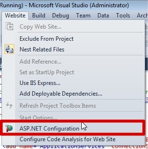 Ora para quem utiliza ou utilizava/administrava uma base de dados ASPNETDB para validação de utilizadores, na versão do Visual Studio 2013 vê-se privado da antiga opção no menu Website do VS2010 ou VS2012.