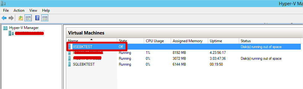 1º Deveremos olhar para os discos e escolher o que pretendemos fazer Merge e desligar a respetiva Virtual Machine – a mesma deverá estar em OFF no state.