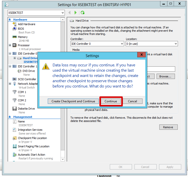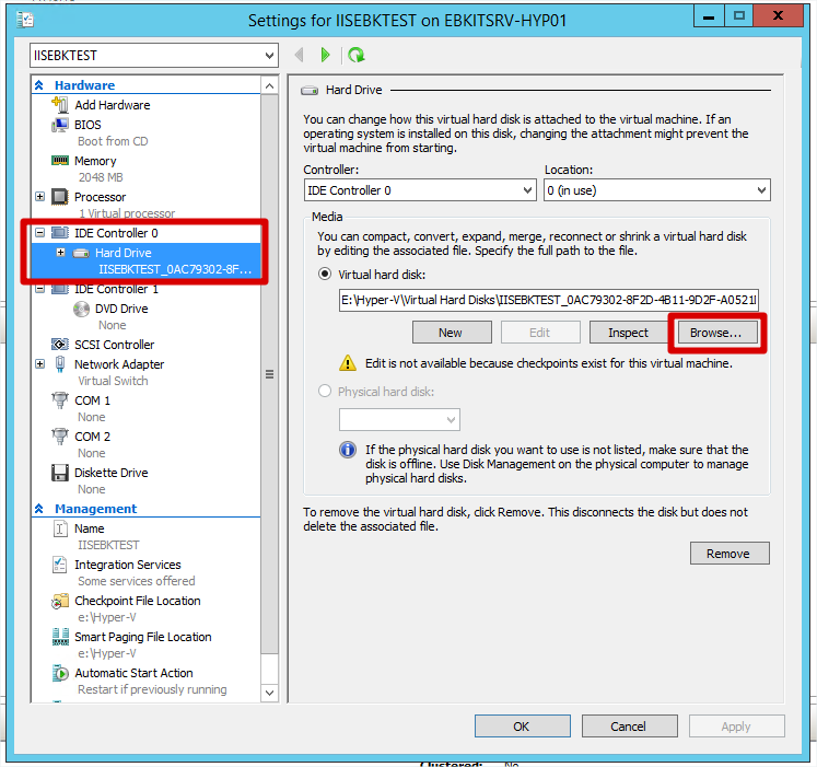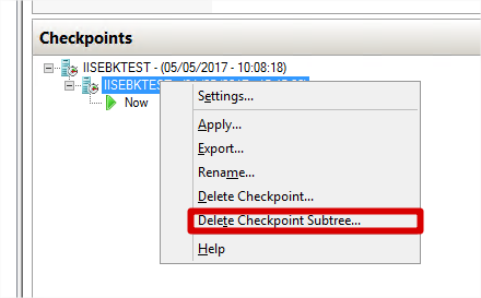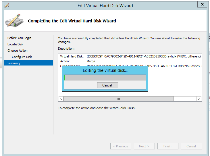 Após verificar alguns posts de como se podia efetuar o Merge dos checkpoints criados no Hyper-V, verifiquei que haviam várias formas de efetuar o merge, mas nenhuma funcionou como pretendia, dando no fim erro.